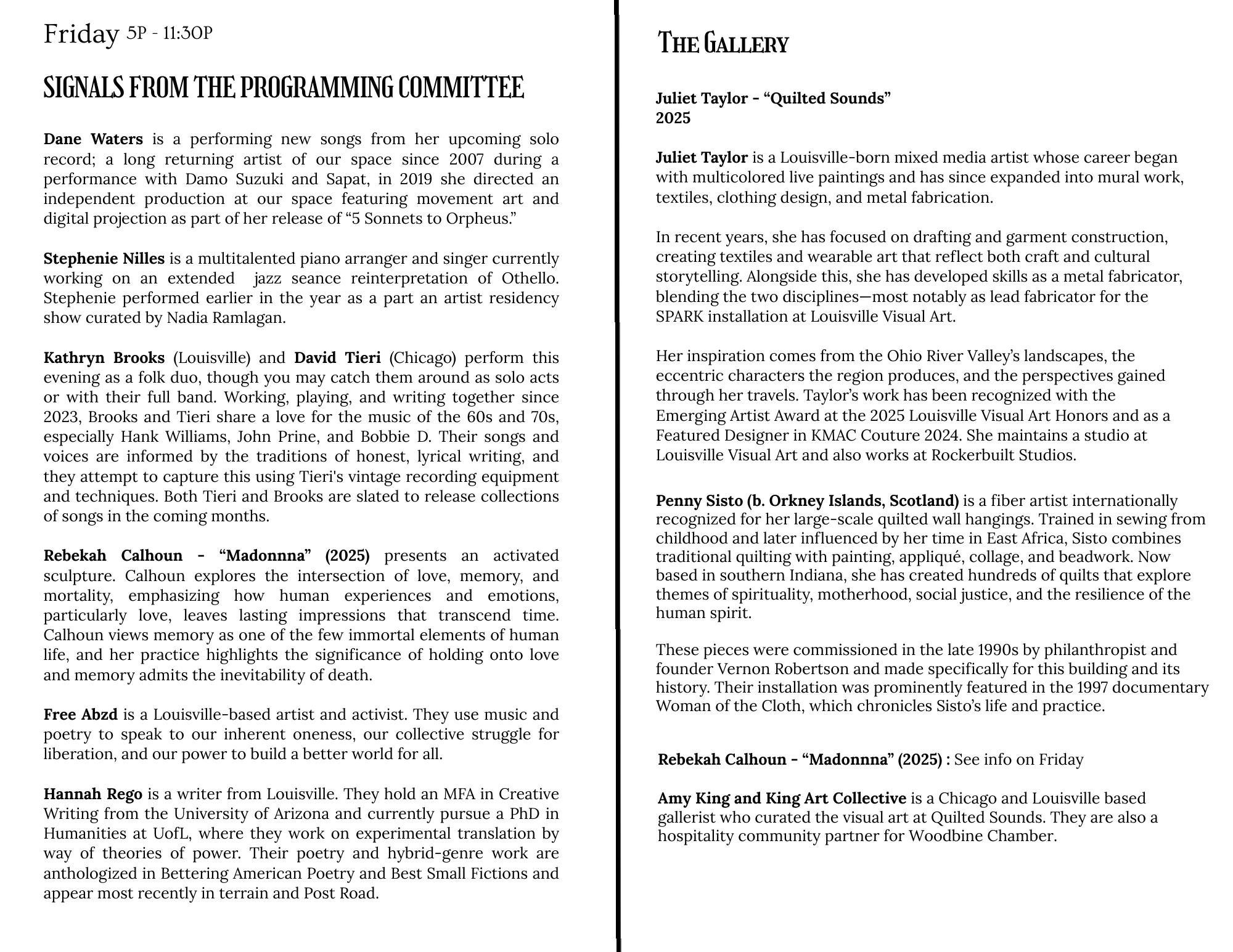 Printed matter: Quilted Sounds 2025 Printed Program